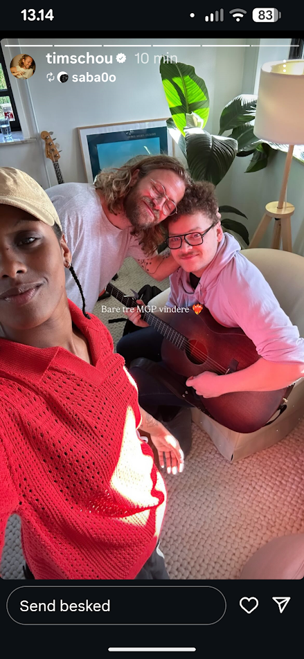 Sander har i den seneste tid delt flere stories fra studiet, blandt andet ledsaget af teksten “Can’t wait to show everyone the fruits of our labor”. På billedet ses han i det, der umiskendeligt ligner The Arrangements studie, i selskab med Melodifestivalen- og Eurovision-legenden Joy Deb samt Rasmus Rex – tidligere elev på Danish Songwriting Academy og i dag producer hos netop The Arrangement.