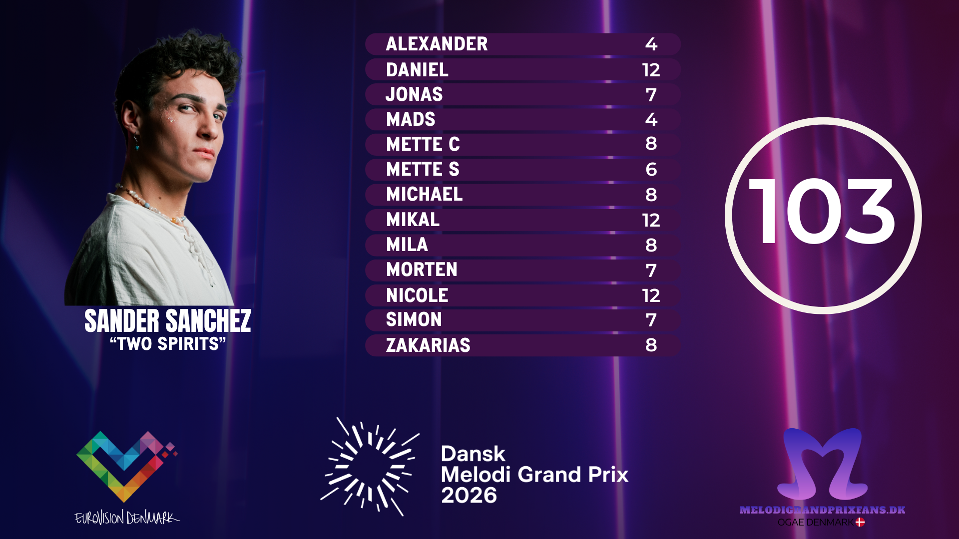 Min top 3 har været vendt op og ned helt frem til afstemningens deadline, og Sander har også været forbi de 12 point flere gange. Men vi ender på et meget, meget stort 8-tal!
